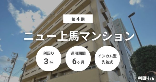 不動産クラファン「利回りくん」、 『第4期ニュー上馬マンション』を1/16(金)募集開始!